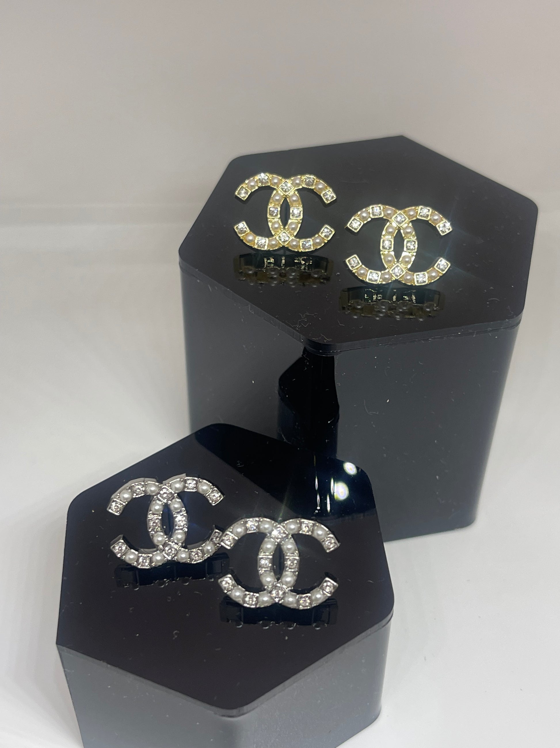 Cc stud earrings w/logo